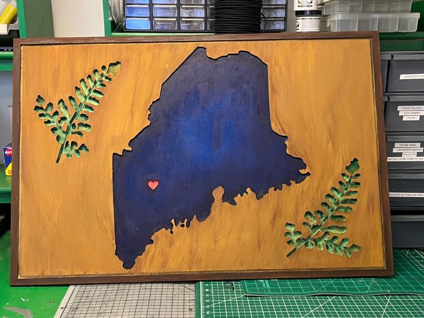 I made the state of Maine with maidenhair ferns, then painted it with acrylic paint.