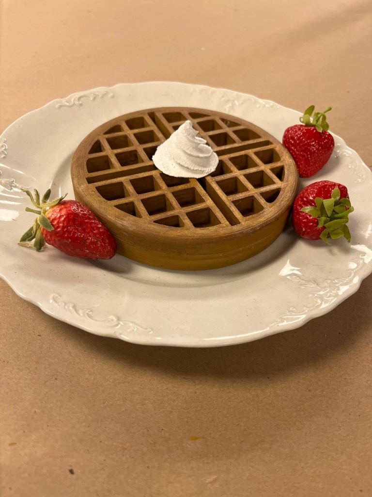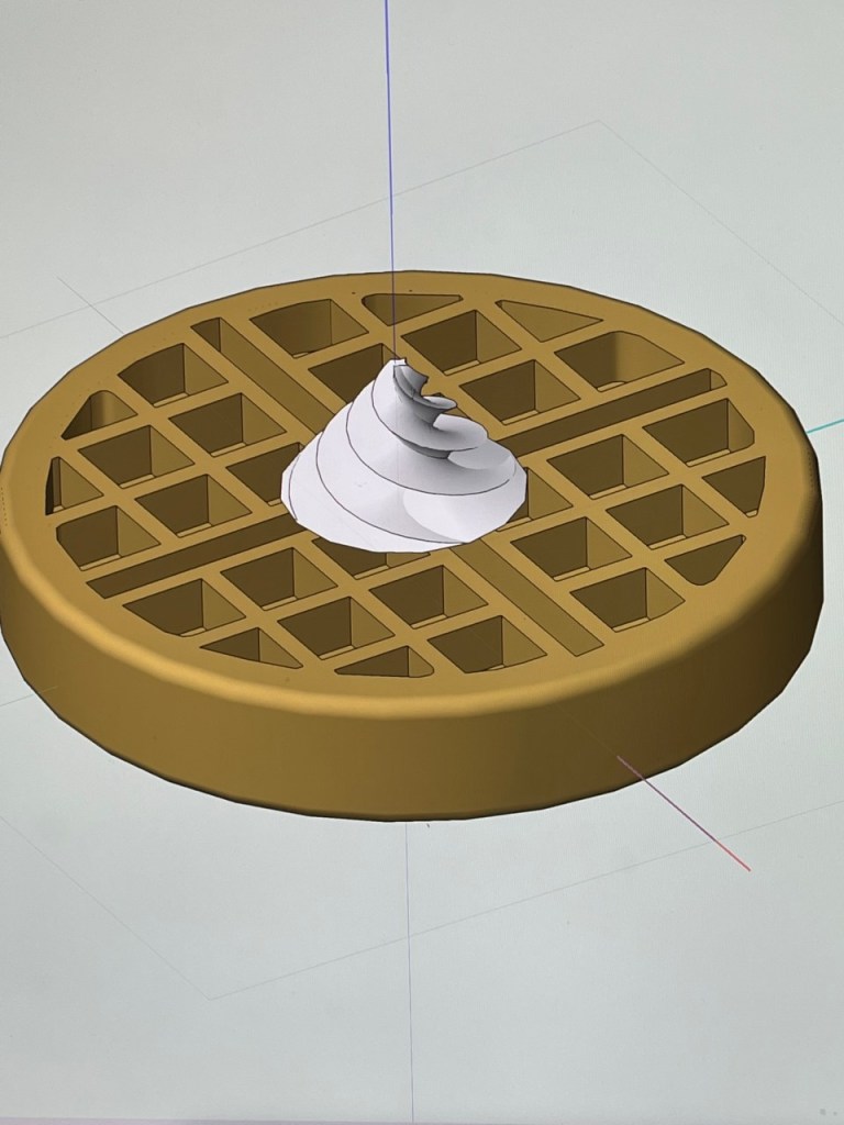 I designed a waffle with whipped cream in Vectorworks, then painted it with acrylic paint.