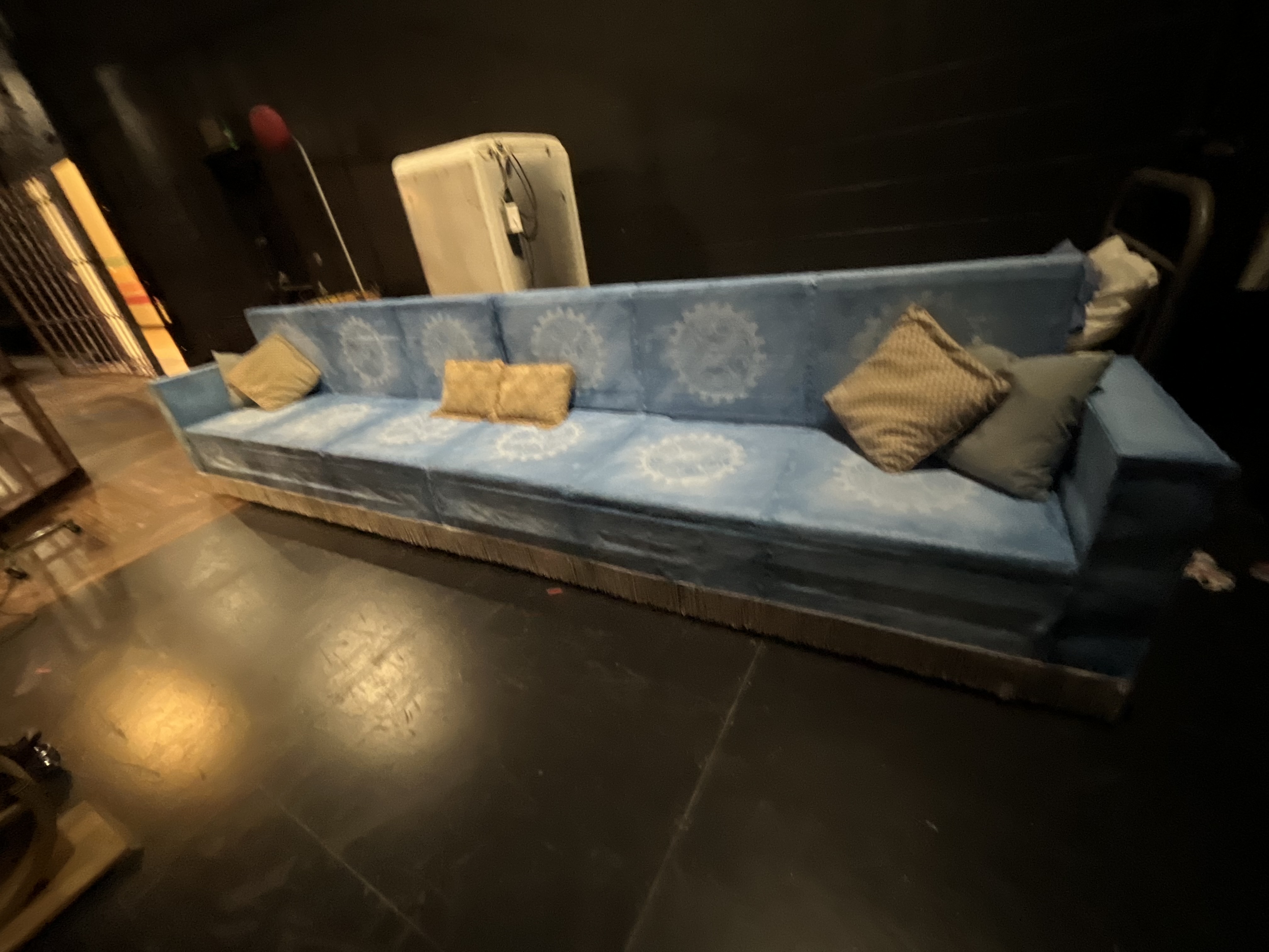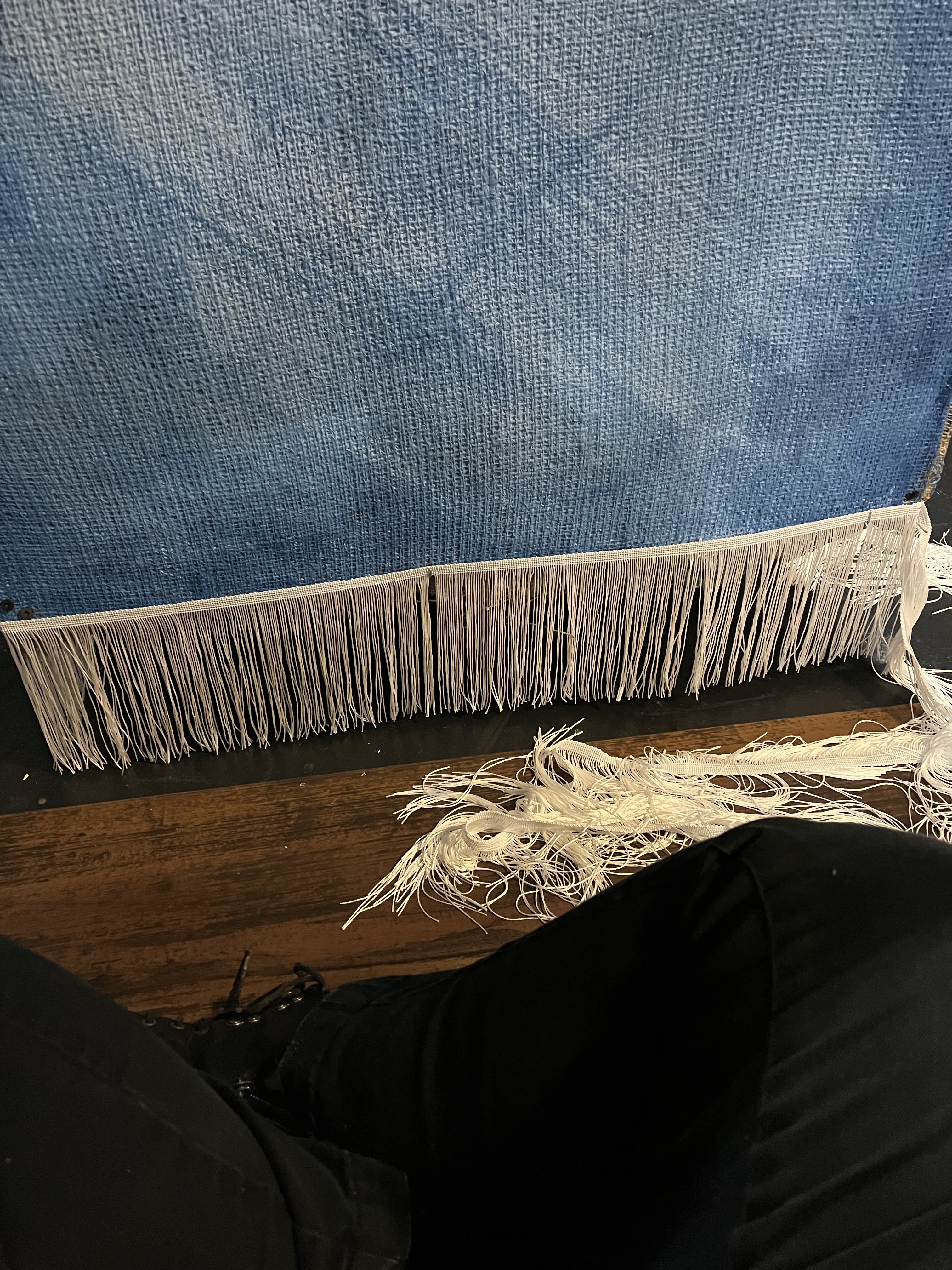 I stapled the trim onto the couch and arranged the pillows on it.