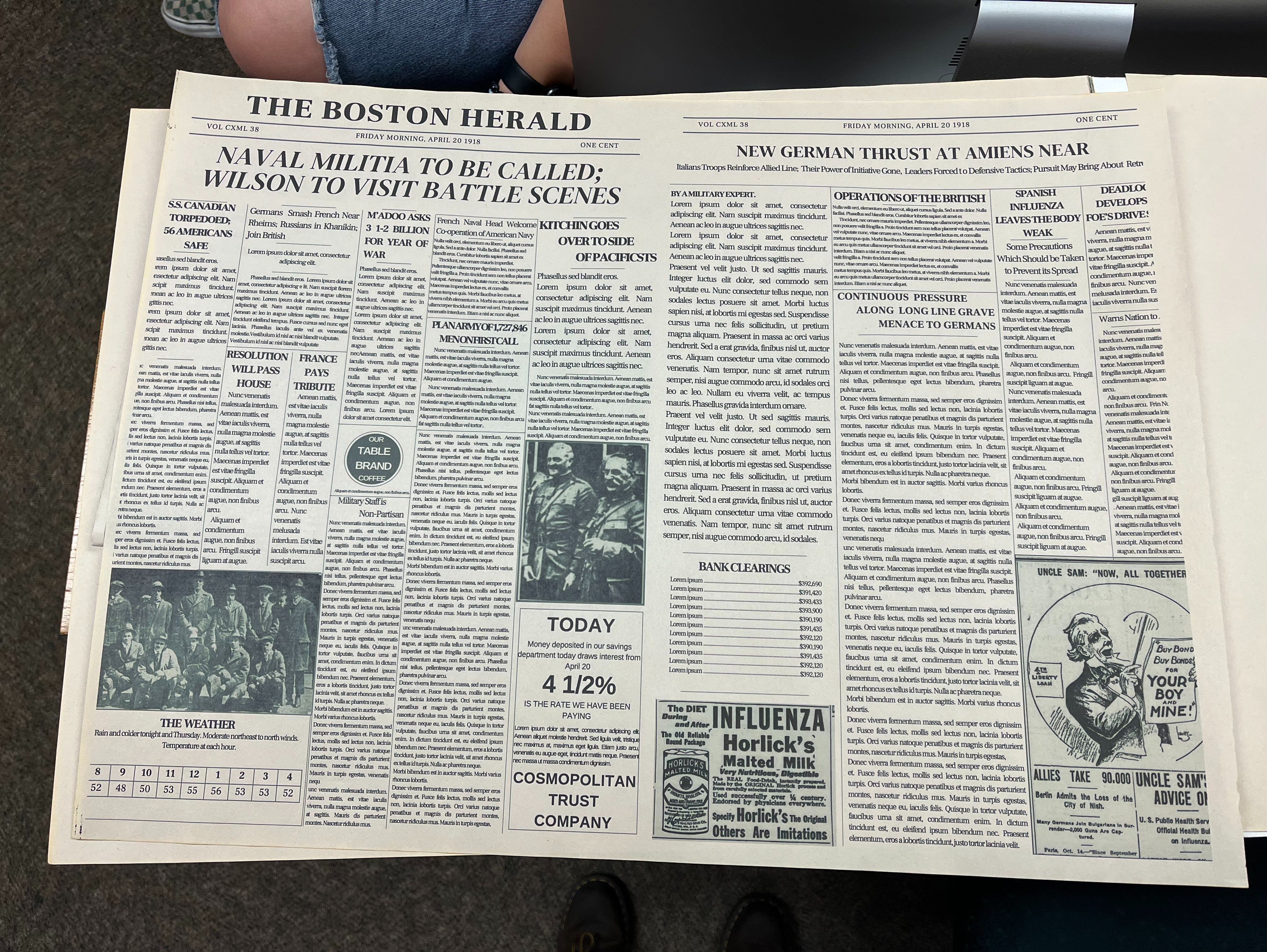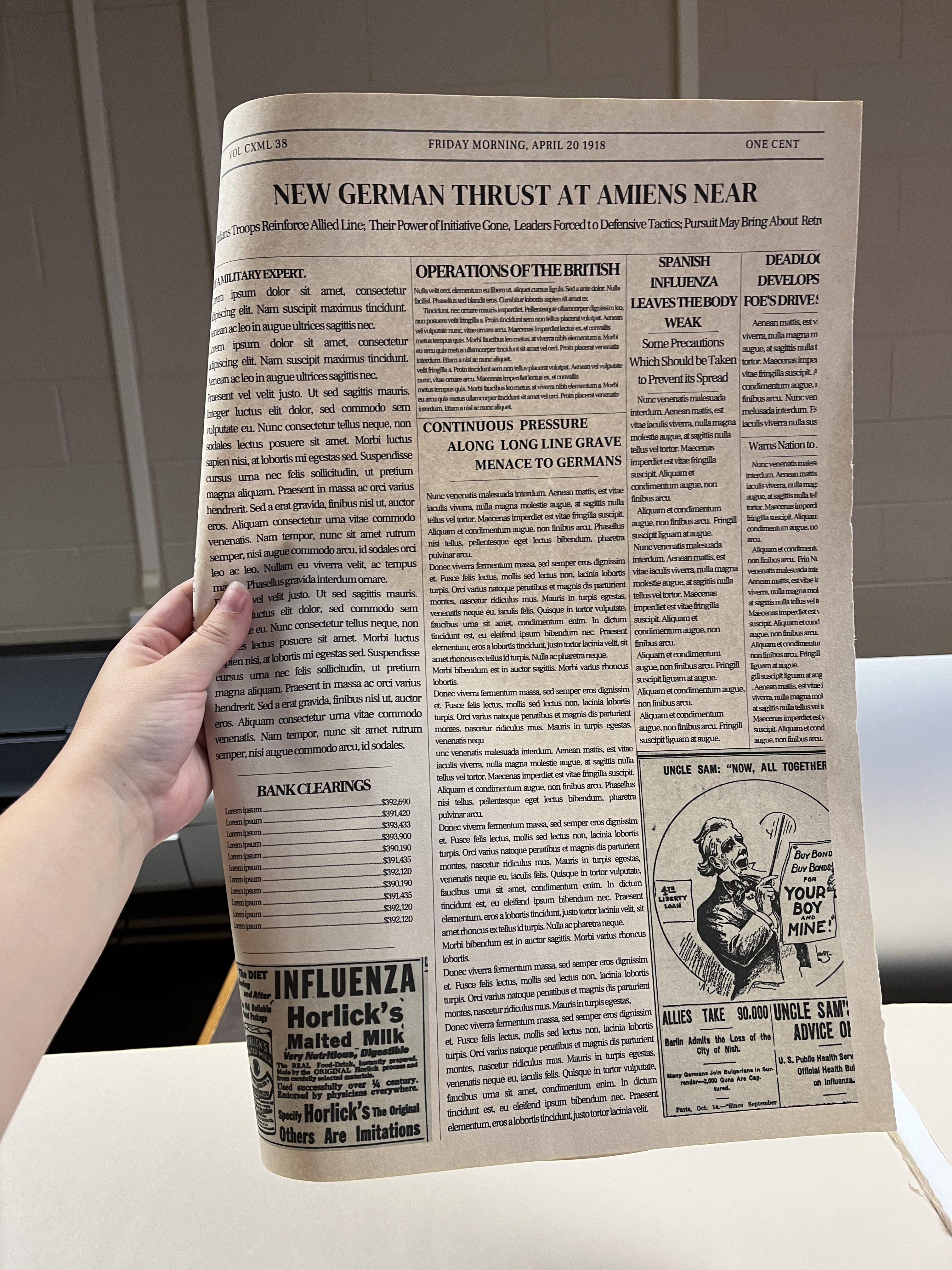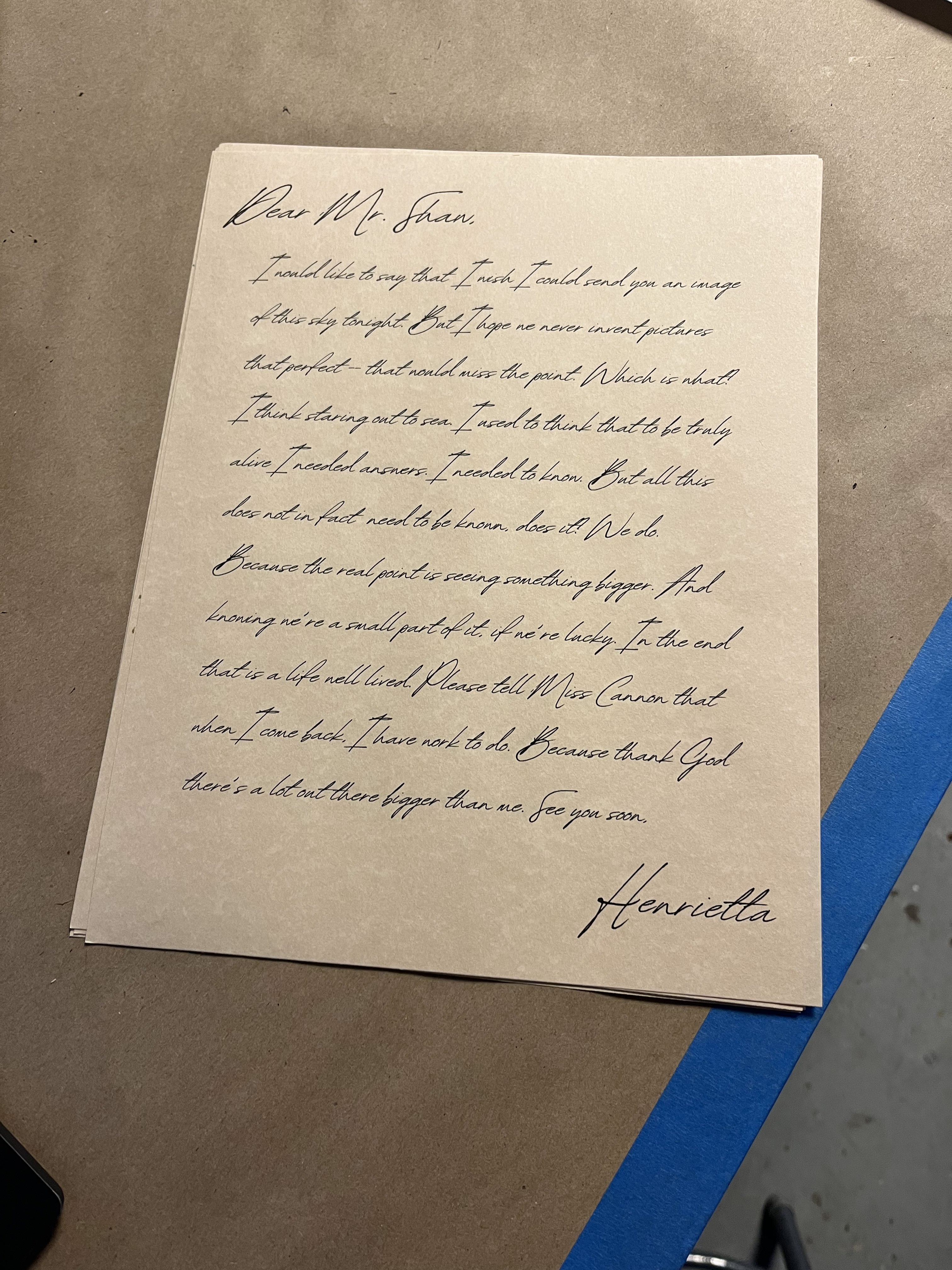 I researched various paper props to try to make them historically accurate. We filled the inside of the logbooks by hand to make them look full when flipped through. For letters, I used different fonts for different characters to make them look like different handwriting.