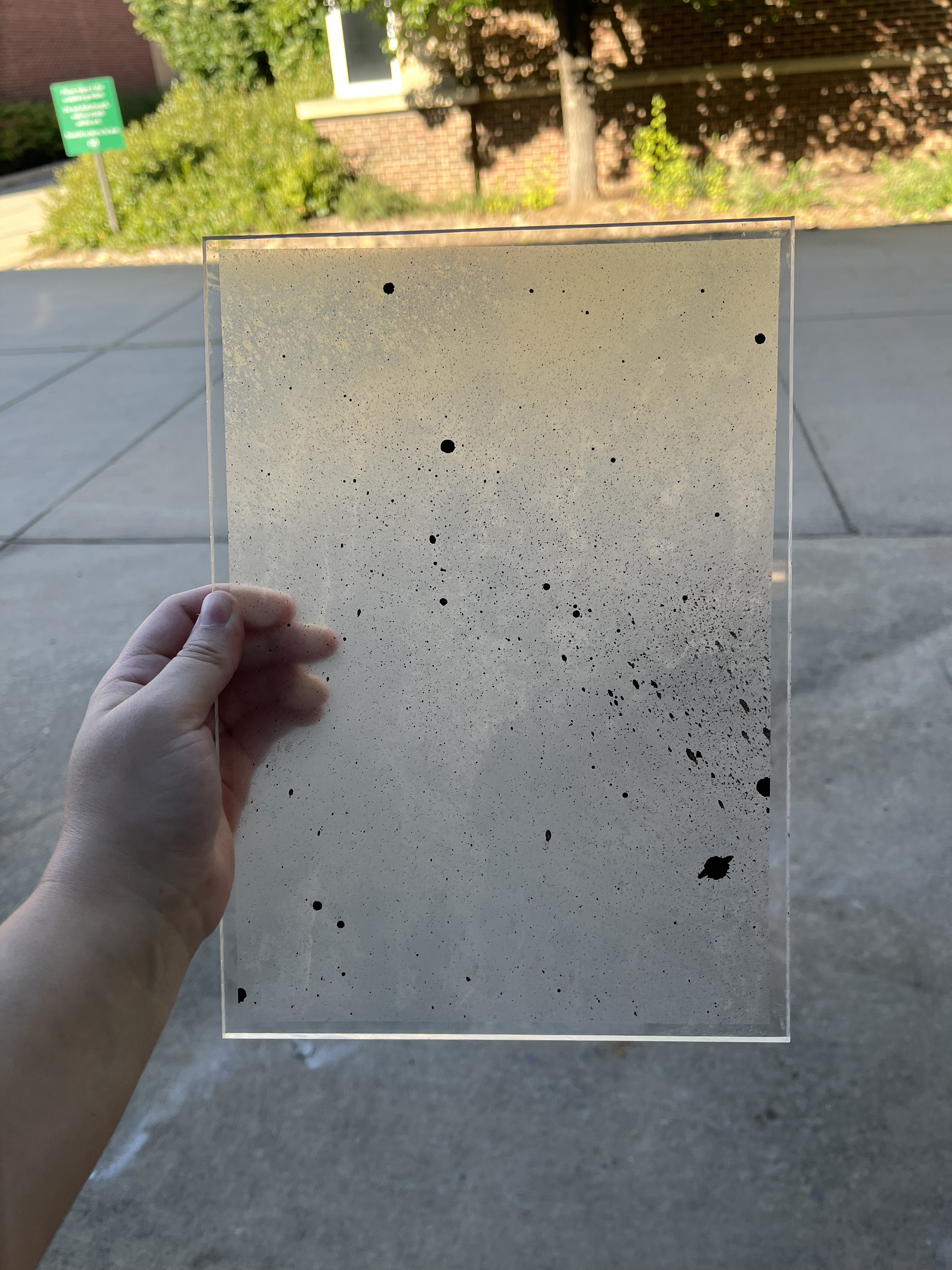 The star plates were made out of cut Plexiglass then they were taped around the edges with Washi tape. We sprayed the taped side of the plate with frosted glass spray, then used black spray paint to make stars. We lightly pressed the nozzle to make it come out in bigger drops. Some dots were hand-painted on. Finally, we removed the tape. Prop Master Rachel Ross made a breakable star plate by scoring one of the plates and breaking it, then Stage Management used clear glue to reattach it every night.