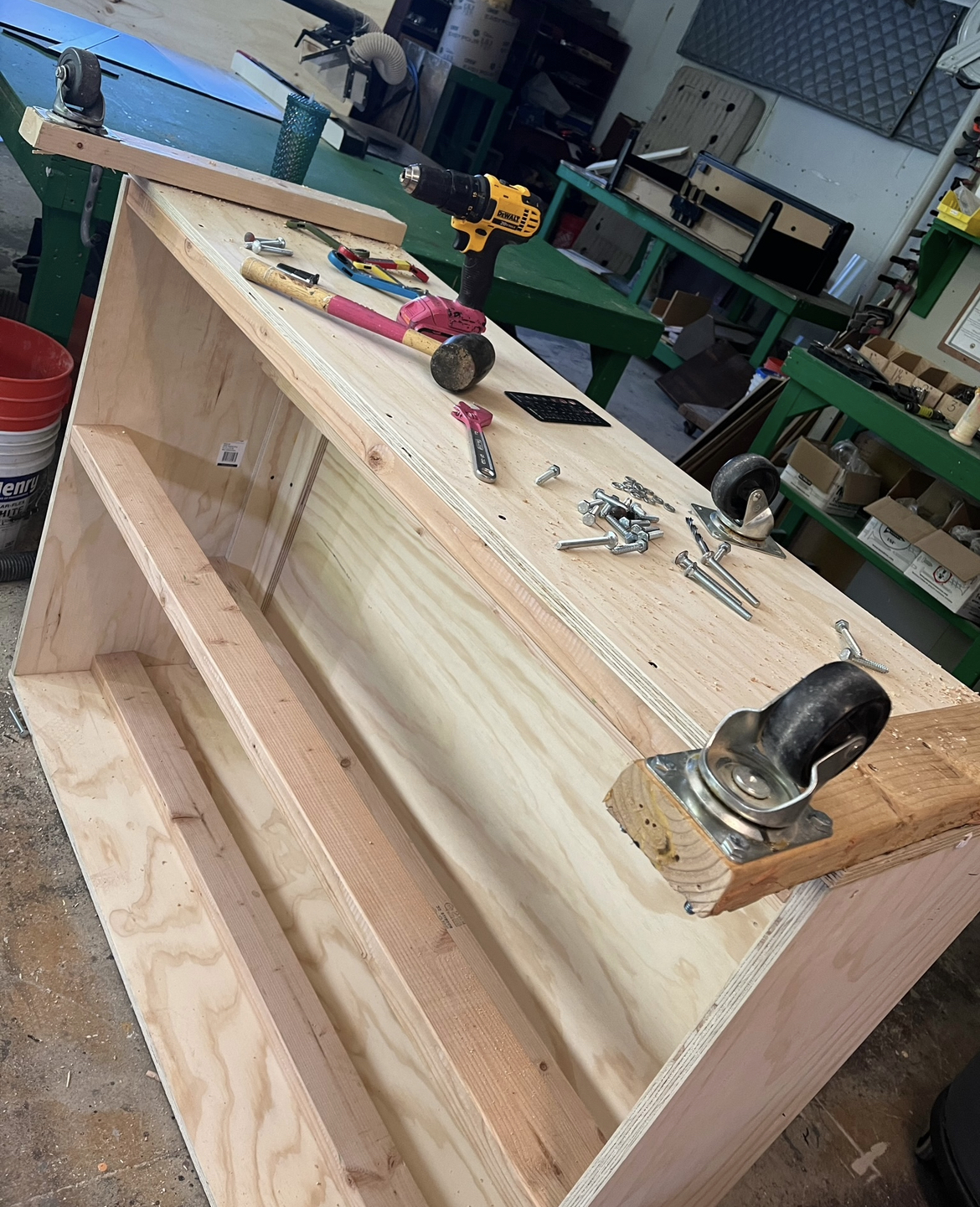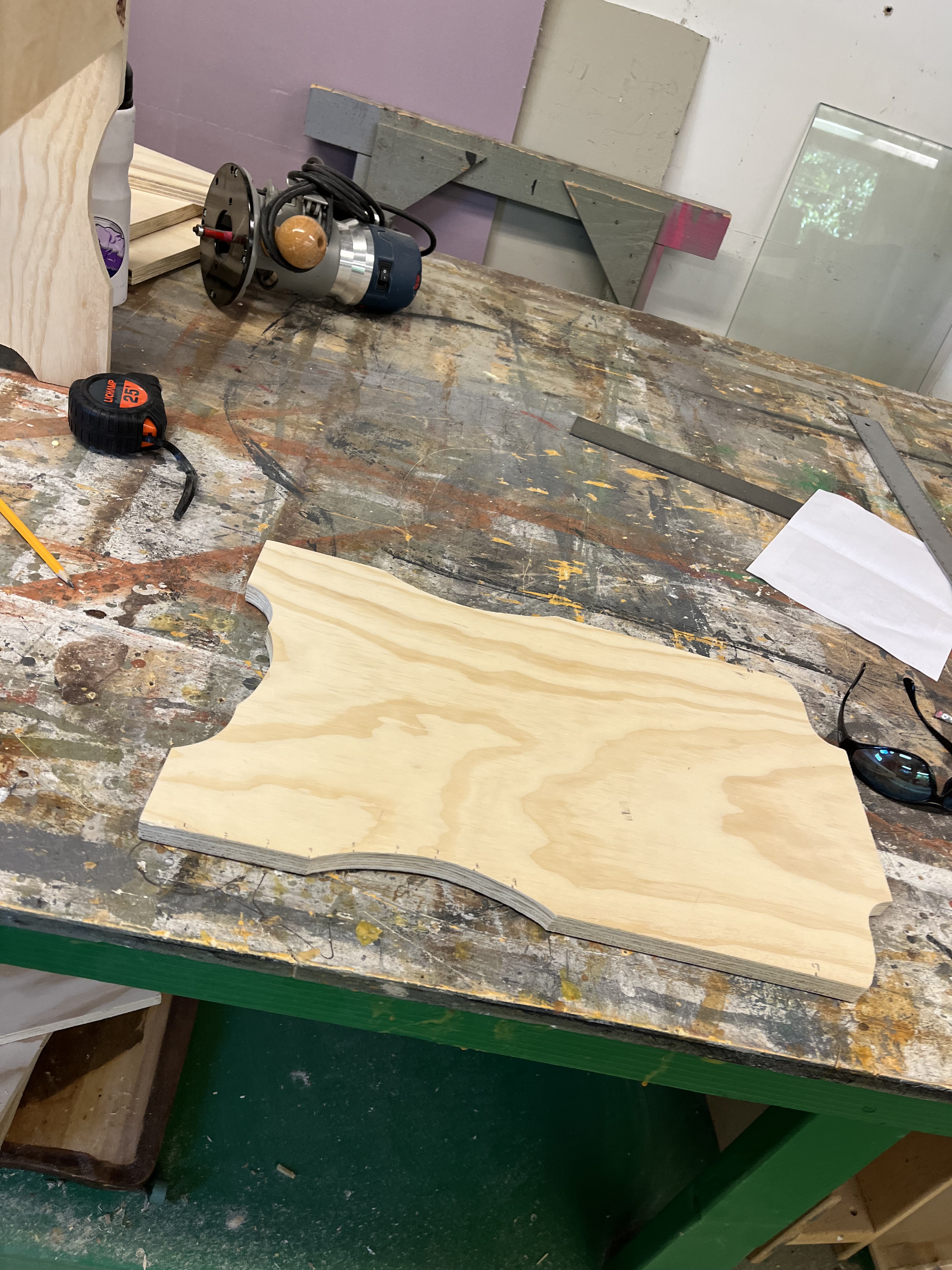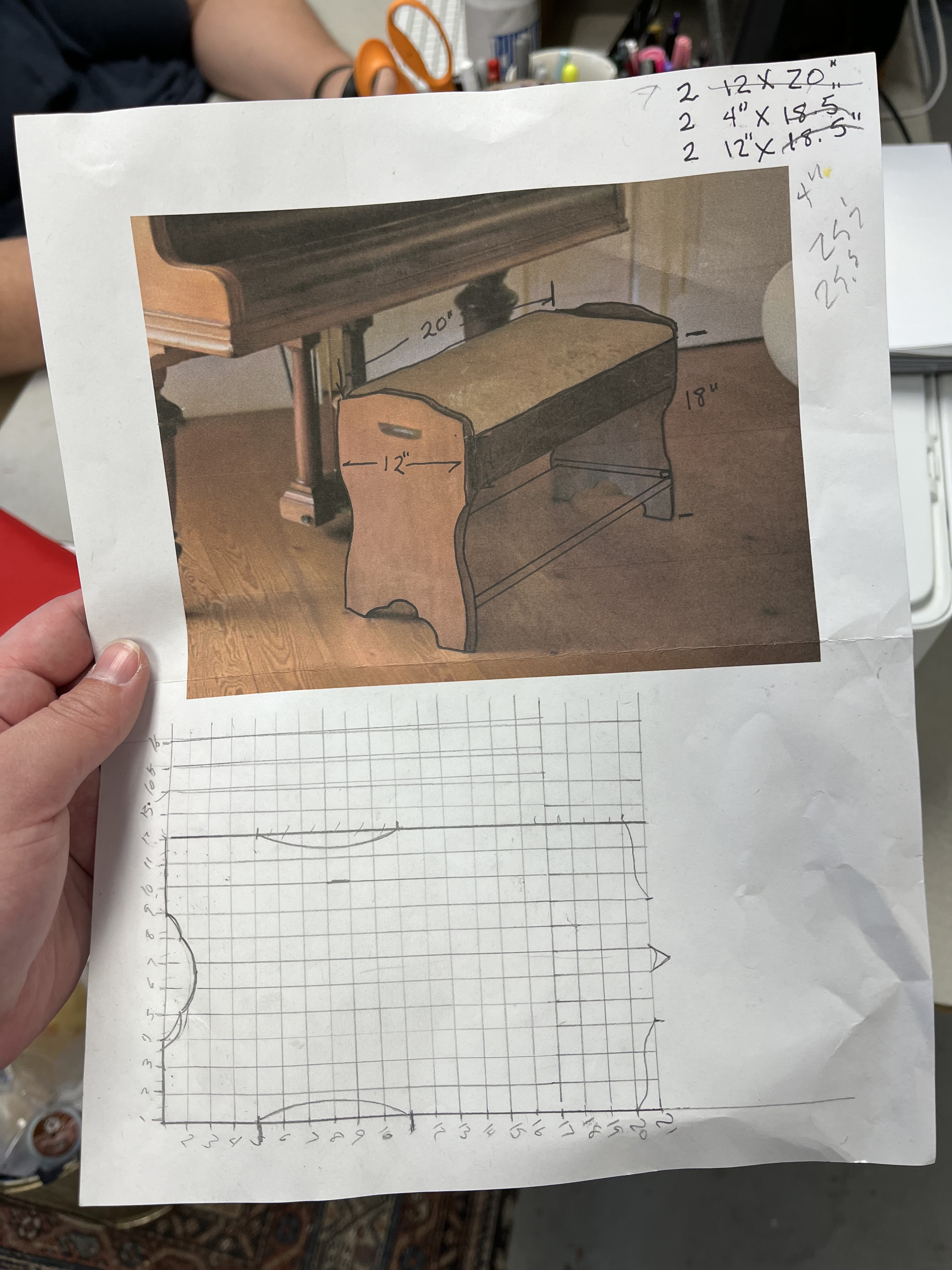 I used a jigsaw to cut out pieces for the piano bench before sanding it and assembling it with wood glue and a nail gun. I also assisted Rachel Ross in constructing the piano and adding casters. I made yardsticks for the piano teacher using the miter saw. For the students’ chairs, I cut and attached pieces of wood to the bottom for under-chair storage and painted them black. For the switches, Jay Duckworth, Rachel Ross, and I carved out the center of foam rods using a Dremel tool before adhering bamboo sticks to the inside. We did this because it made a loud noise when used, but was soft enough to not hurt anyone. We wrapped the switches with tape to allow them to dry without gaps showing the bamboo. We made twelve of these in case any of them broke.